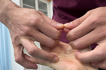 体調は毎日変化します。親指と中指で輪(ゼロ)を作り力の入り具合を見る検査を毎回実施しています。体が必要としている治療を取り入れることで、効率的な治療を取り入れていきます。